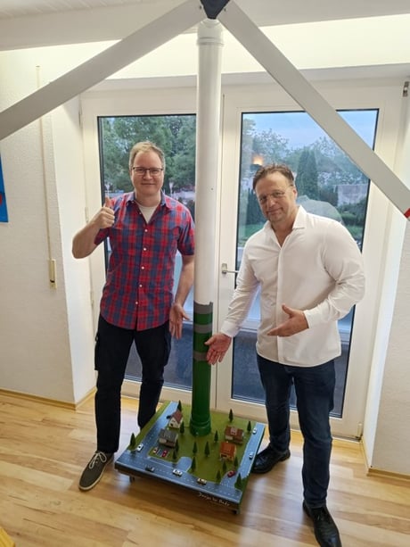 Stromnetz. Wir werden mit unserem Modell, das die gigantischen Ausmaße eines Windrads zeigt, ab September mit Infoständen die betroffenen Bürger aufklären.